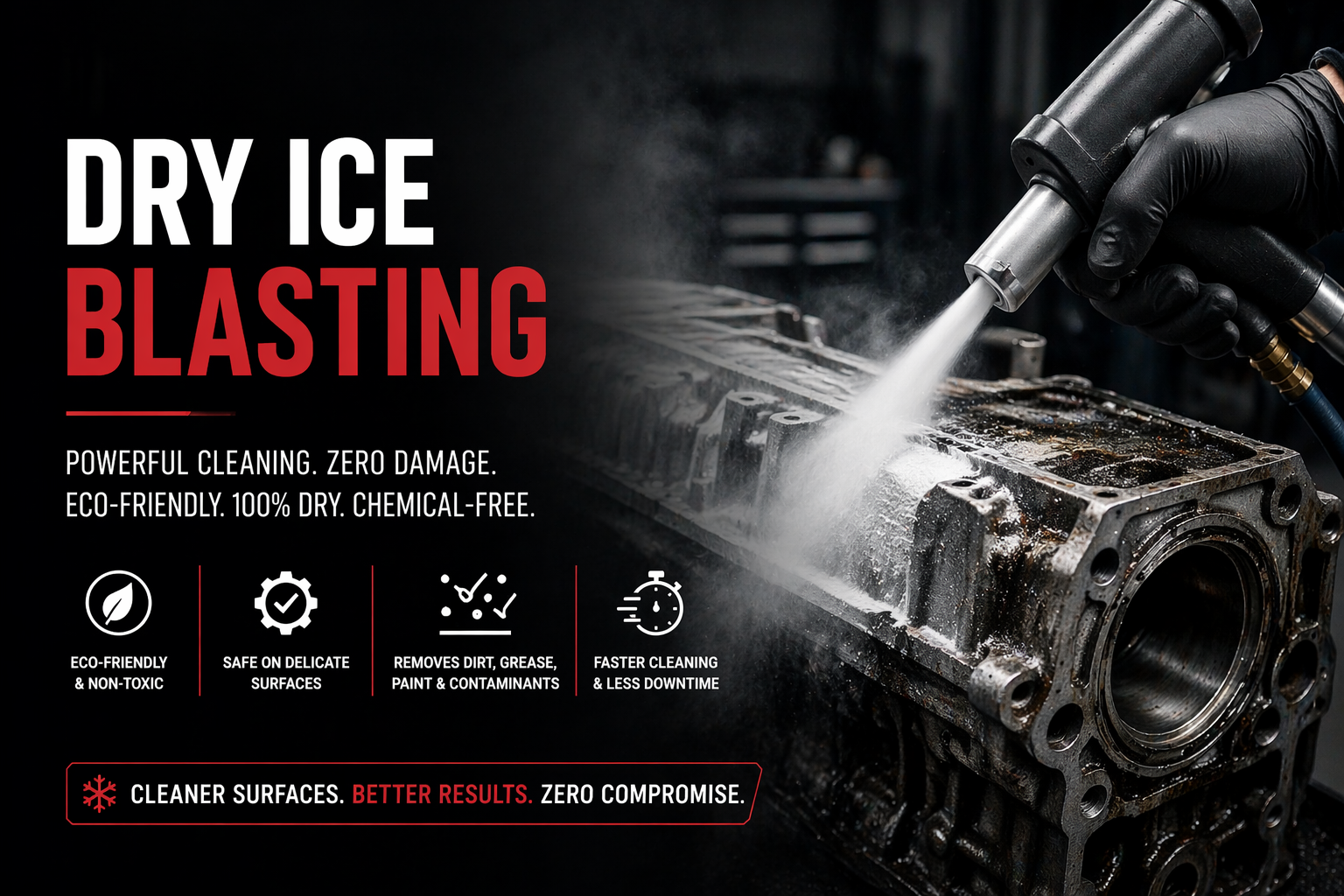 Experience powerful, non-abrasive cleaning with our advanced dry ice blasting technologyremoving dirt, grease, and contaminants without damage. Read More...