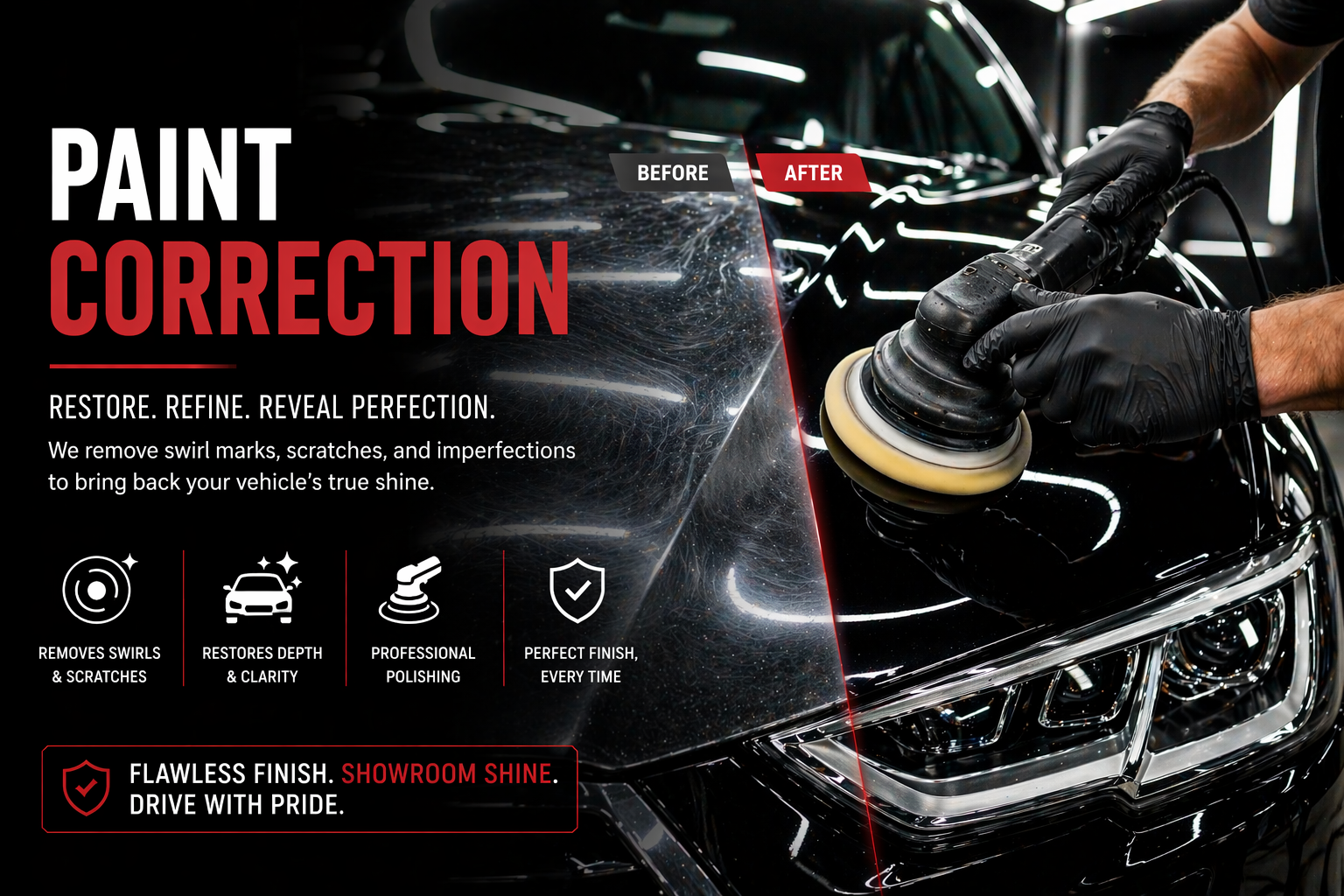 Restore your vehicle’s flawless finish by removing swirl marks, scratches, and imperfections with expert paint correction.