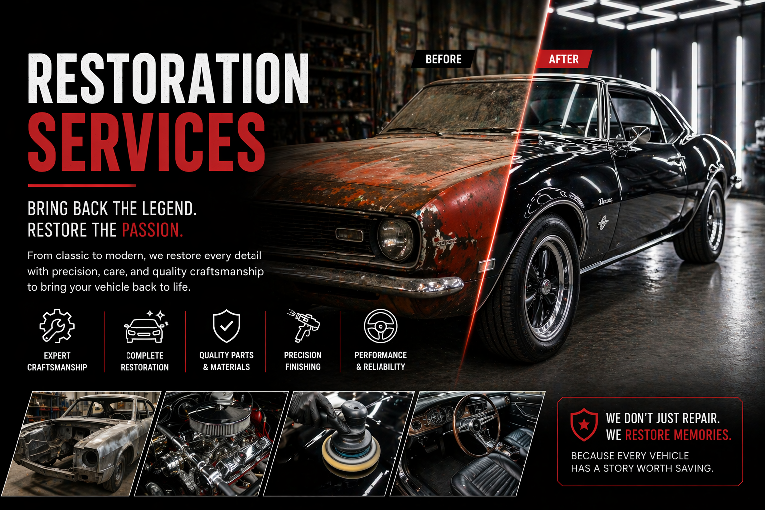 Bring your vehicle back to life with expert restoration services that combine craftsmanship, precision, and attention to every detail.