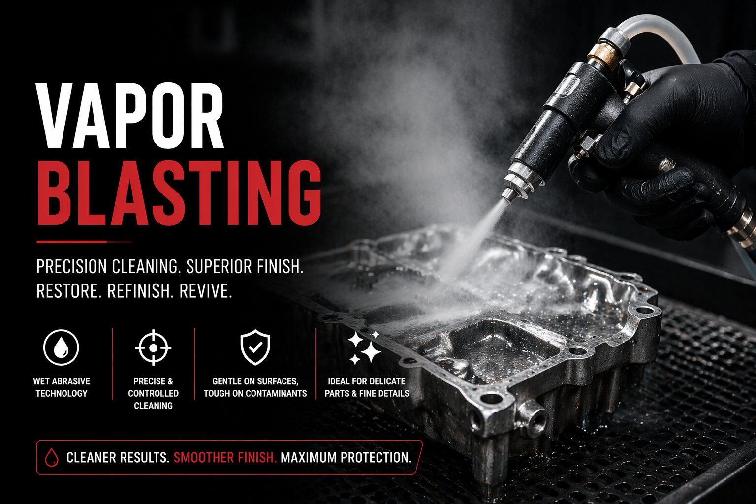 Achieve a smooth, factory-like finish with our precision vapor blasting process, perfect for restoring delicate surfaces without damage.